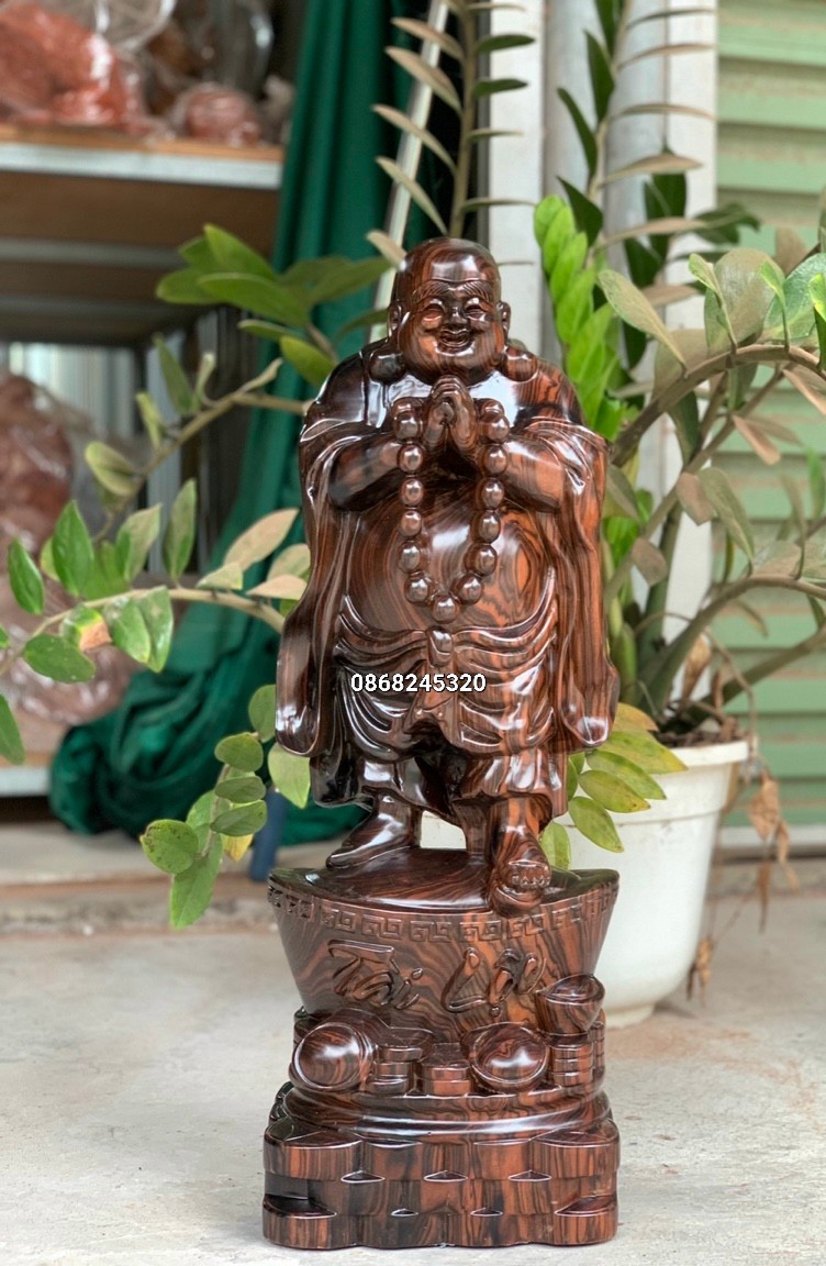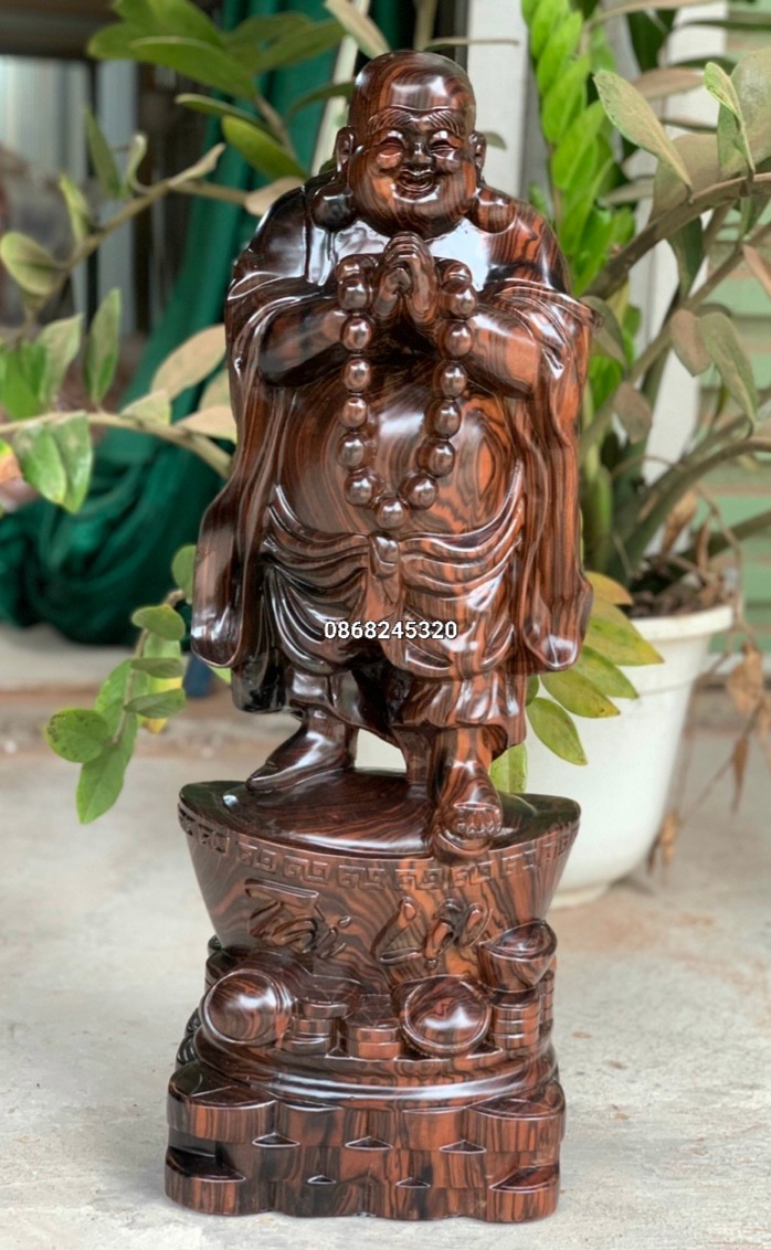 _ Tượng phật di lặc chúc phúc được làm bằng chất liệu gỗ mun hoa liền khối tự nhiên 100%