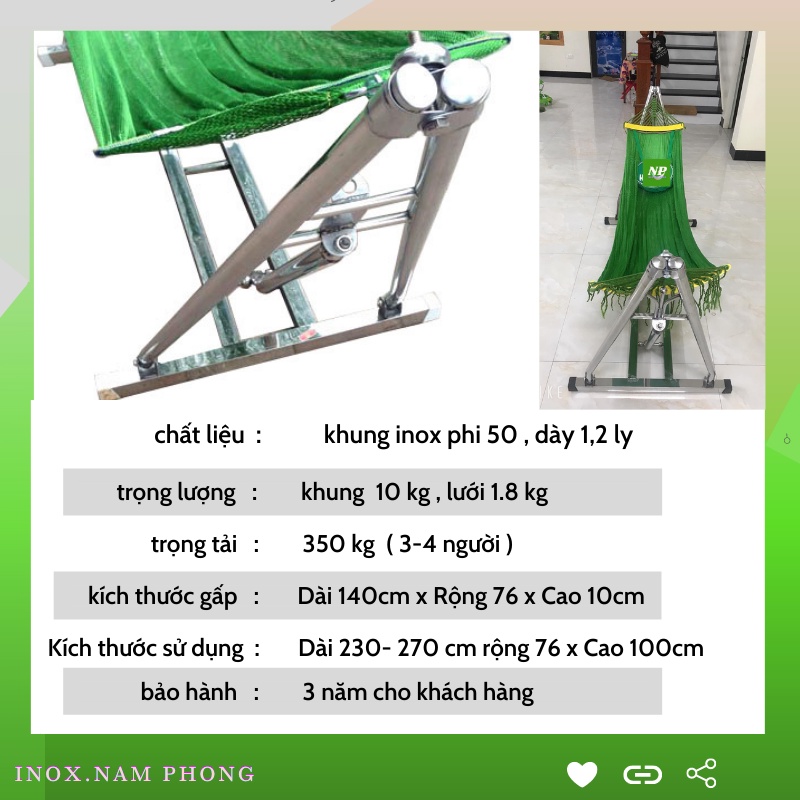 võng xếp khung inox cỡ người lớn phi 50 NAM PHONG